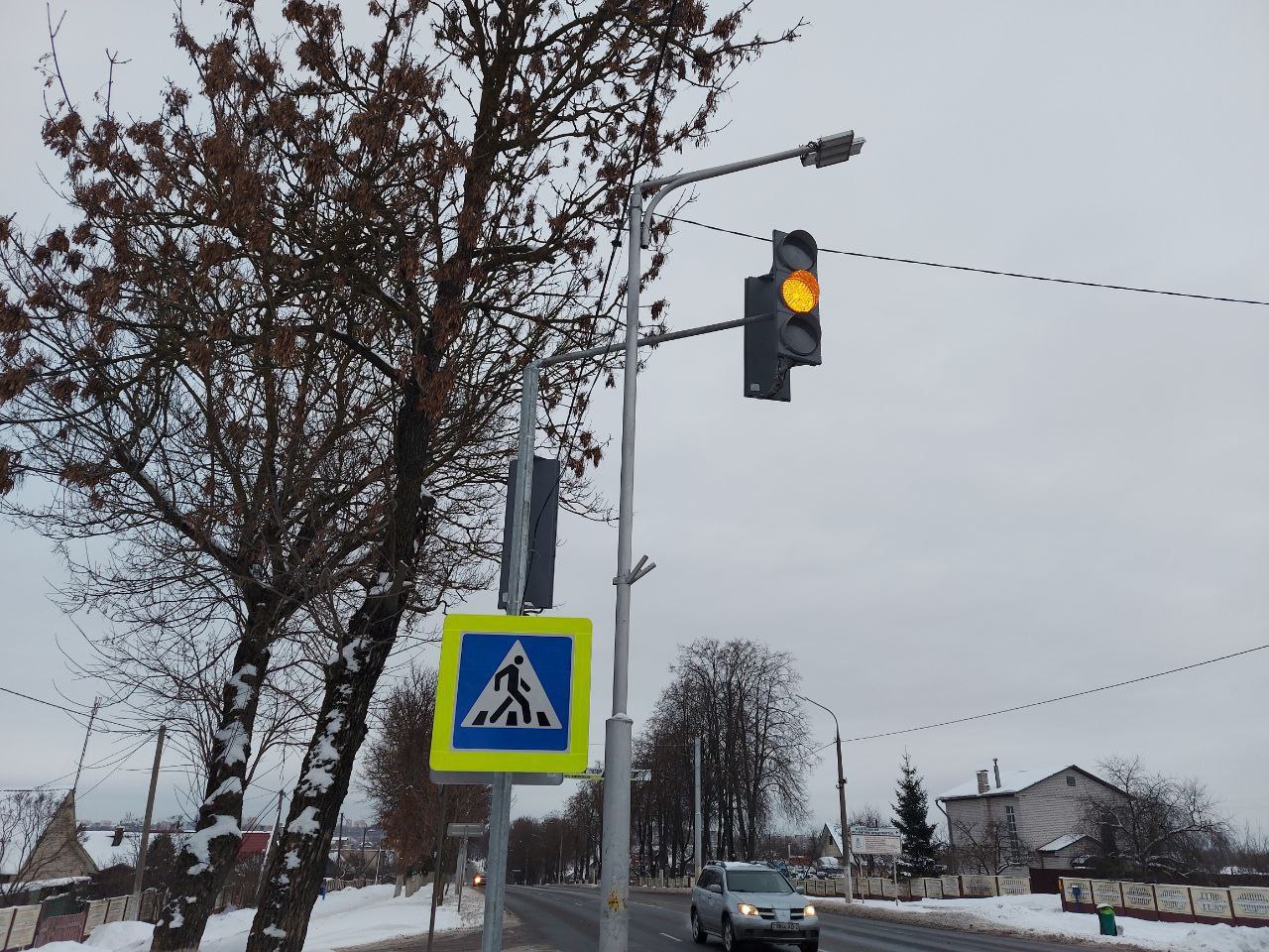 Сейчас светофорный объект работает в желтом мигающем режиме. Это сделано для того, чтобы участники дорожного движения привыкли к изменениям. В скором времени светофор заработает в штатном режиме.