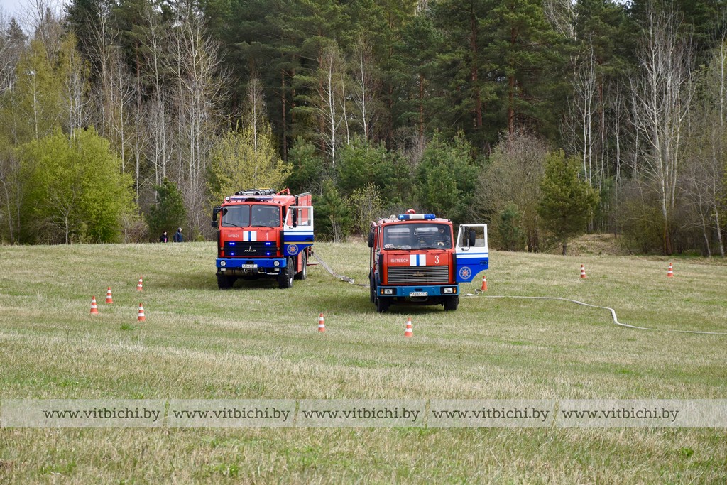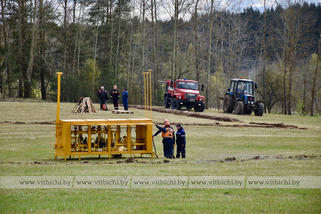 В первый день комплексных учений неподалеку от урочища Шпили была отработана ликвидация пожара в экосистеме. По замыслу учений существовала угроза распространения огня на лесной массив и жилой сектор. По сценарию сильный порыв ветра привел к замыканию электропроводов, вспыхнула искра, от которой загорелась сухая растительность, огонь перекинулся на кустарник. Спасатели совместно с работниками лесхоза остановили пламя, не дав ему распространиться дальше. Аварийная служба витебскгаза нивелировала угрозу возникновения пламени вокруг газораспределительной установки.