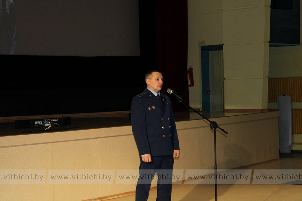 Перед началом просмотра к зрителям обратился заместитель прокурора города Витебска советник юстиции Алексей Толкачёв. Алексей Дмитриевич рассказал о вехах в истории Конституции суверенной Беларуси, ее положениях и подчеркнул, что в соответствии с Основным Законом главная ценность нашей страны – человек.