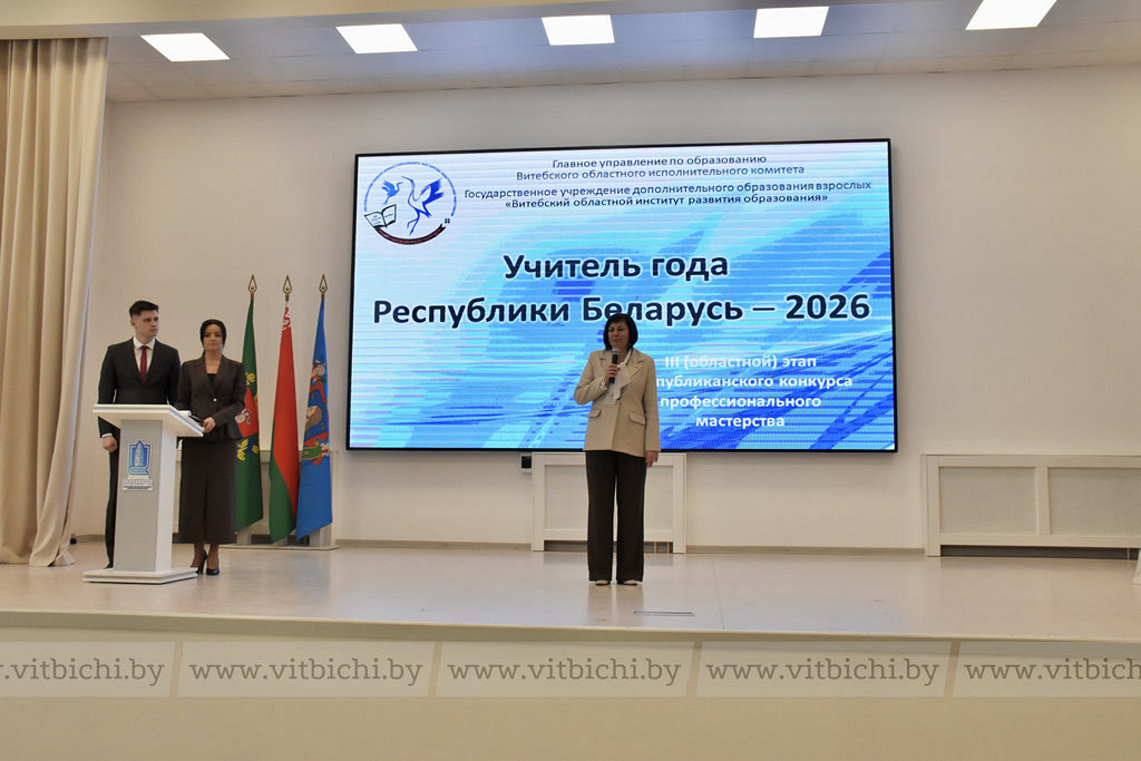 На базе Витебского областного института развития образования состоялось открытие областного этапа республиканского конкурса профессионального мастерства педагогических работников «Учитель года Республики Беларусь – 2026». В областном этапе принимают участие 45 лучших педагогов области по девяти номинациям.