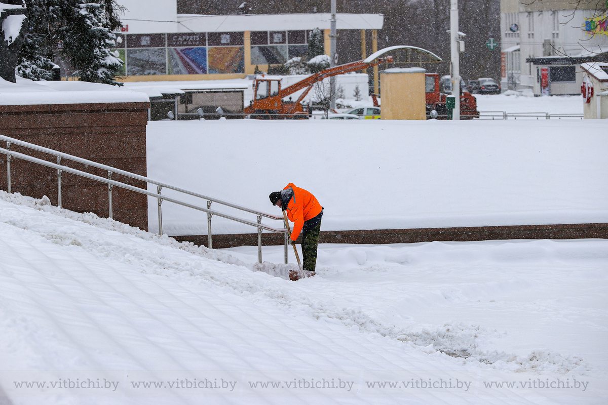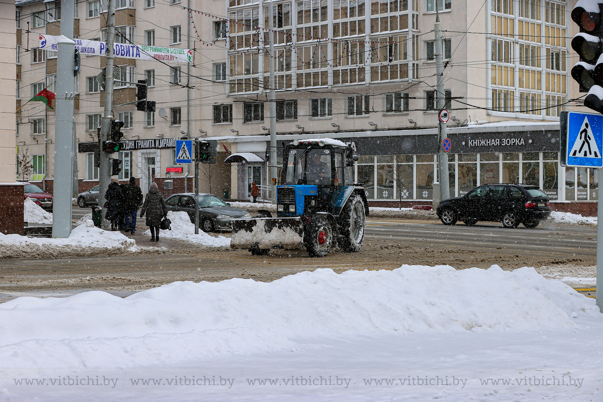 Задействованы на уборке дворов сотрудники ЖРЭТа Витебска. Как сообщил управляющий Дмитрий Поляков, дворы чистят 20 тракторов, а пешеходные дорожки и крыльца освобождают из снежного плена 298 человек.
