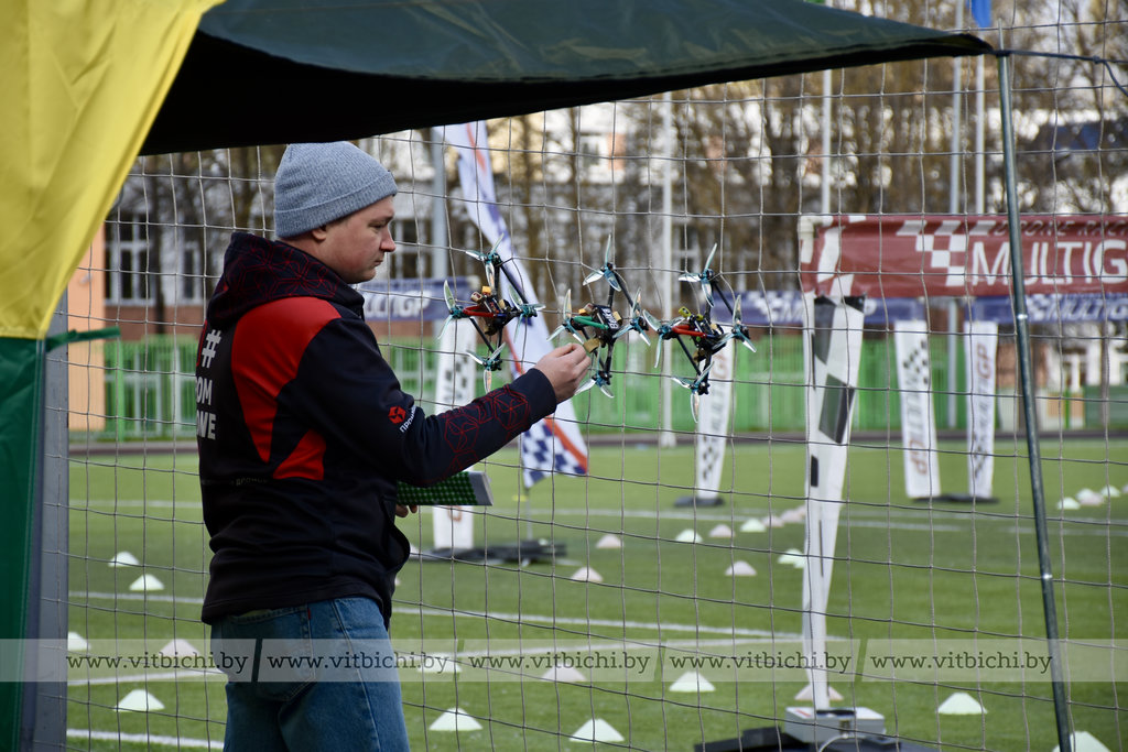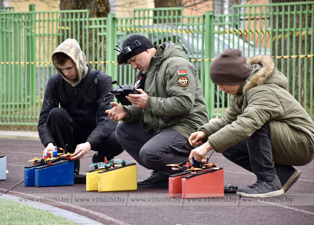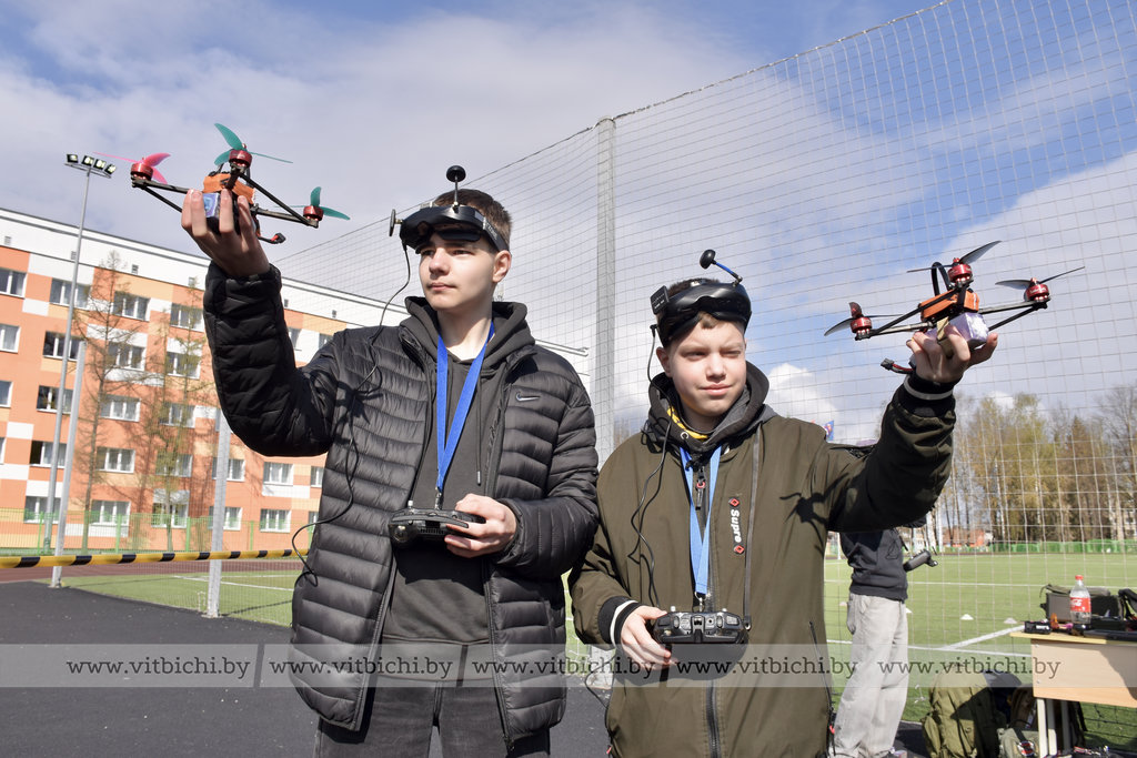 Захватывающие гонки на высокоскоростных FPV-дронах собрали участников и болельщиков на стадионе Витебского государственного технического колледжа.