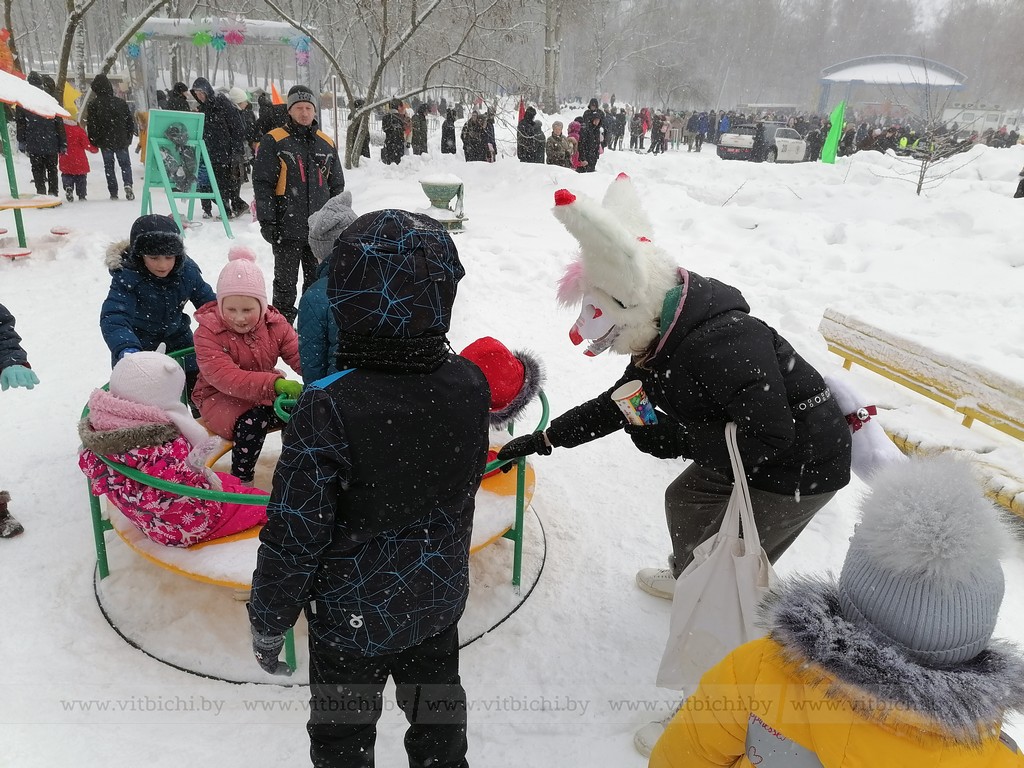 Большой праздник прошел в парке культуры и отдыха имени Советской Армии. Погода была благоприятная, а для тех, кто не стоял на месте и вовсе отличная. А как красиво было в парке! Вокруг белым-бело, все деревья в снежных шапках, немного порошило, поэтому, на кого ни посмотришь – все были в крапинку. Здесь собрались толпы любителей активного отдыха и желающих весело провести время. Такую забаву не пропустил и заместитель председателя Витебского горисполкома Виктор Глушин.