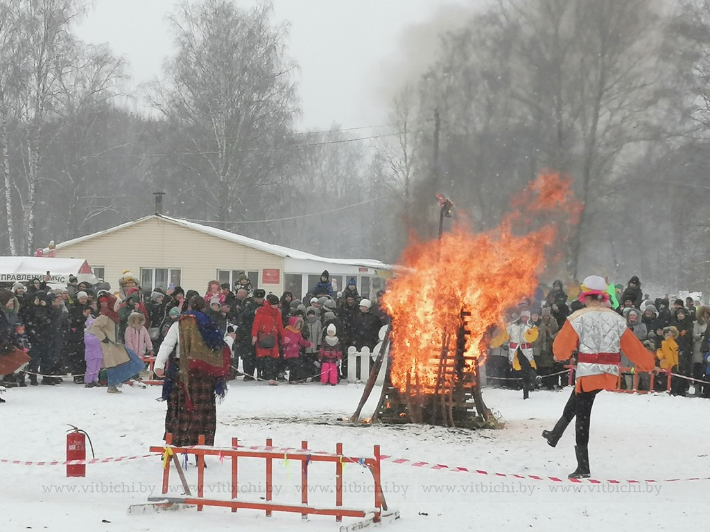 Под конец праздника по традиции сожгли чучело Масленицы, чтобы зима поскорее уходила, а то февраль ишь как взялся, почувствовав свои последние деньки и приближение весны. А вот зима долго не хотела уходить. Все присутствующие столько раз кричали «зима уходи, весна приходи» и «гори, гори ясно, чтобы не погасло», зазывая прекрасную пору. Совместными усилиями все-таки докричались, и рыцарям с настоящими факелами в итоге удалось поджечь чучело. А горело оно ох и ярко! Уж точно весна не заставит себя ждать, услышав такие позывные, увидев, как сильно ее ждут.