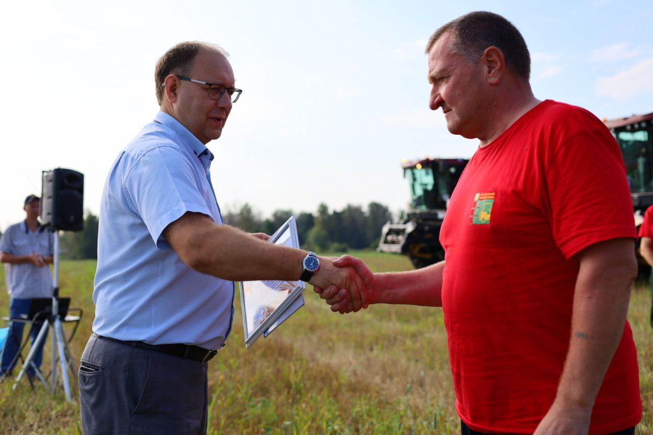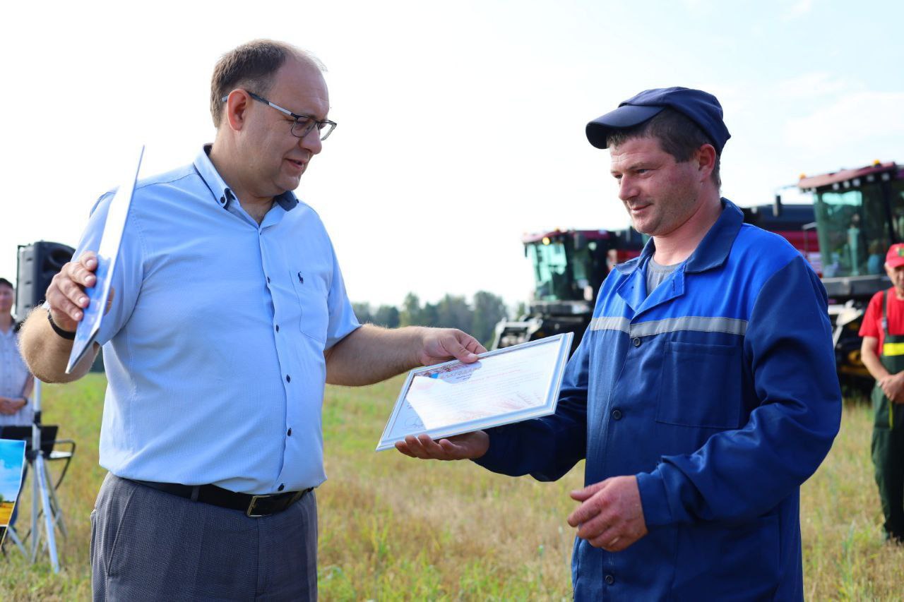 Особую благодарность комбайнерам из соседней области выразил председатель Витебского райисполкома Сергей Егоров. В поле у деревни Ильичёвка им вручили благодарственные письма и ценные подарки. Провожали аграриев Могилёвщины домой с песней.