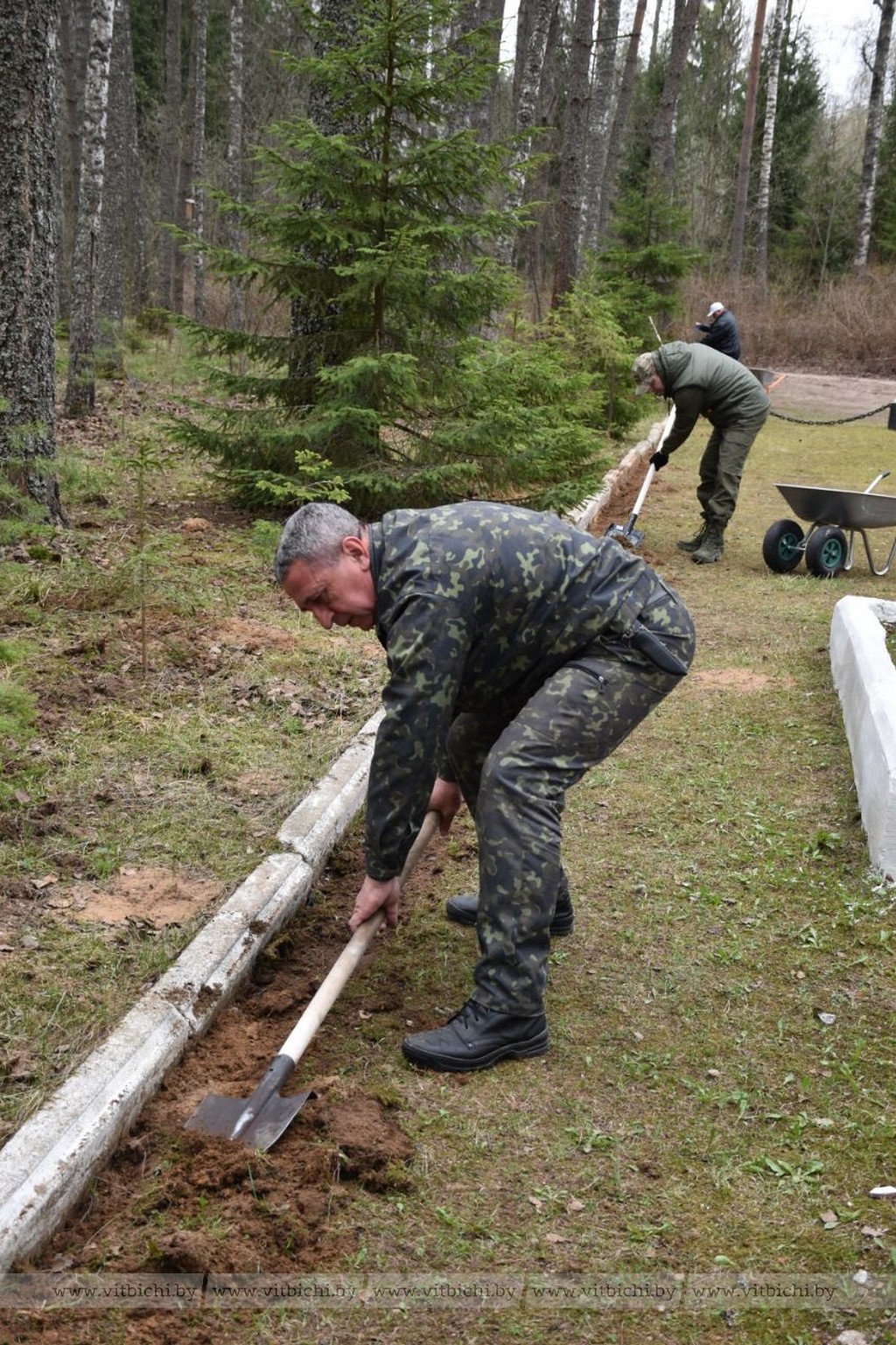 Руководители района трудились на мемориале, который находится на берегу озера Лосвидо, недалеко от деревни Герасимово.