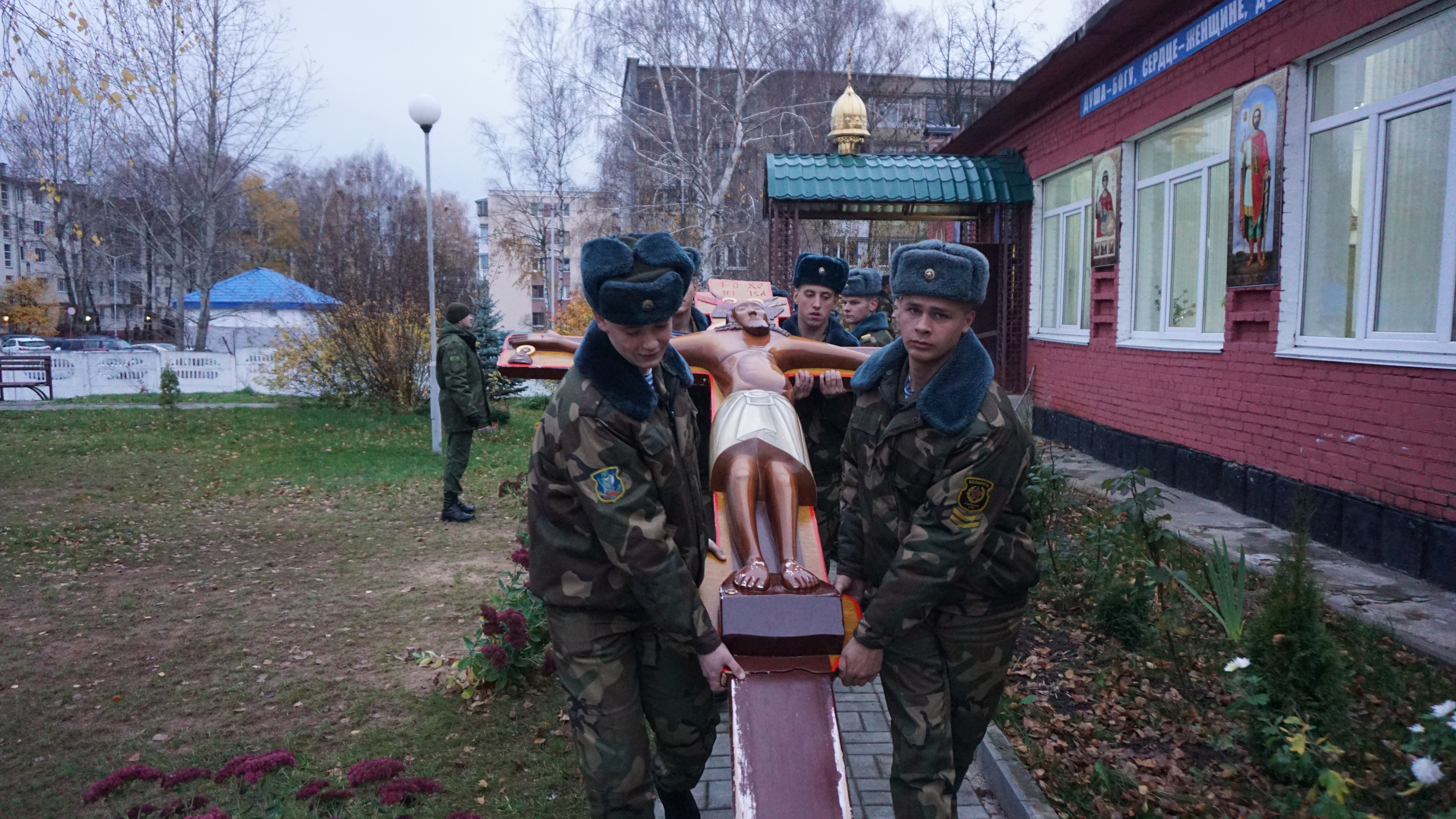 В Витебске первым местом, в которое прибыл крестный ход, стала 103 воздушно-десантная бригада. Личный состав соединения организовал принесение известных чудотворных святынь - Жировичской иконы Божией Матери и Годеновского животворящего креста.
