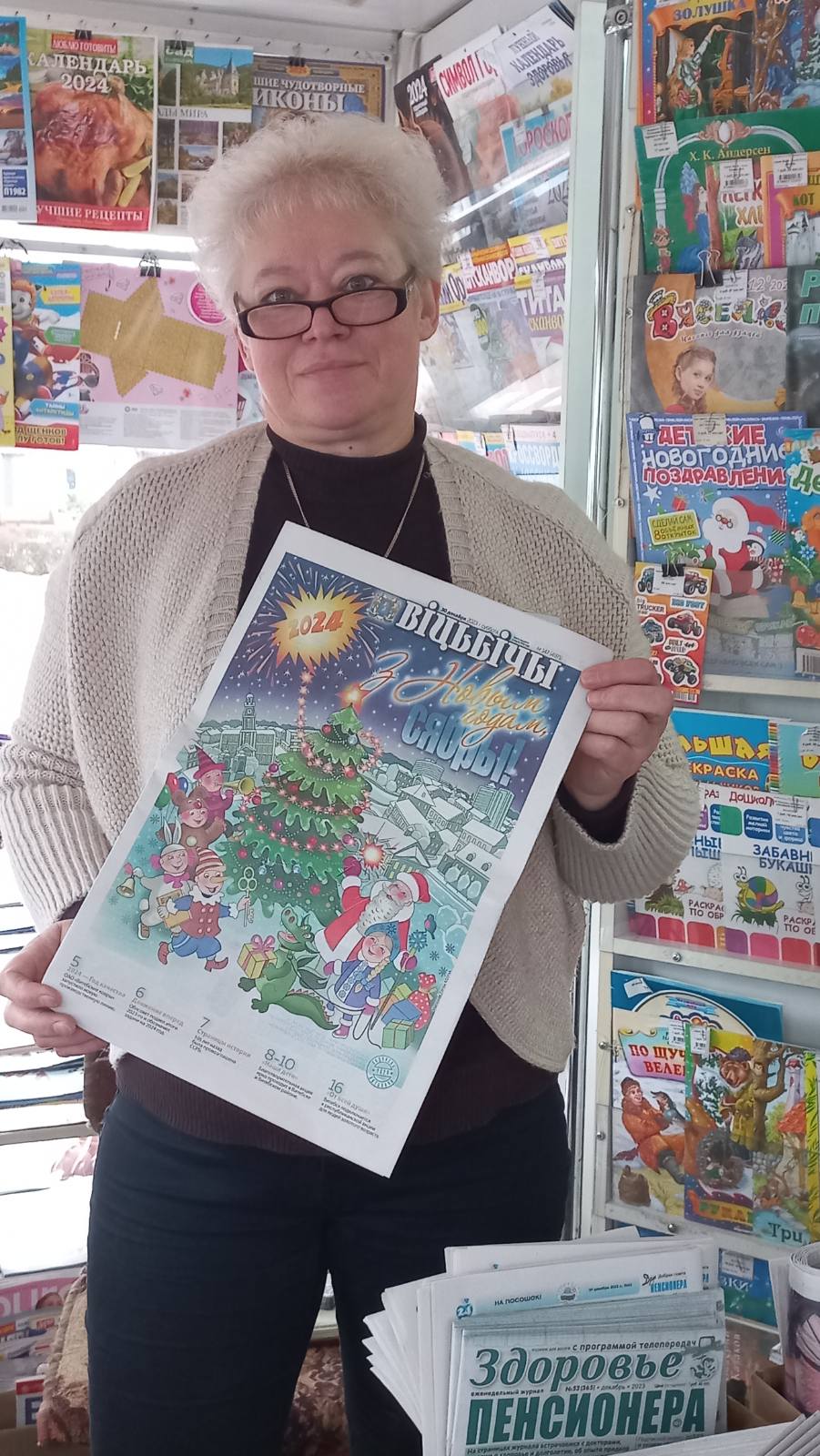 31 декабря ее киоск закрывается в 16.30. И Галина Викторовна поспешит домой - еще необходимо испечь традиционный новогодний " Наполеон", ингредиенты к которому уже заготовила заранее. А всем читателям она желает здоровья, мира, исполнения всех желаний и доброго расположения звезд судьбы. Кстати, многое у самой Галины Викторовны сбывается по гороскопу в "Витьбичах", который киоскёр сама просматривает в первую очередь, как только поступают четверговый номер!