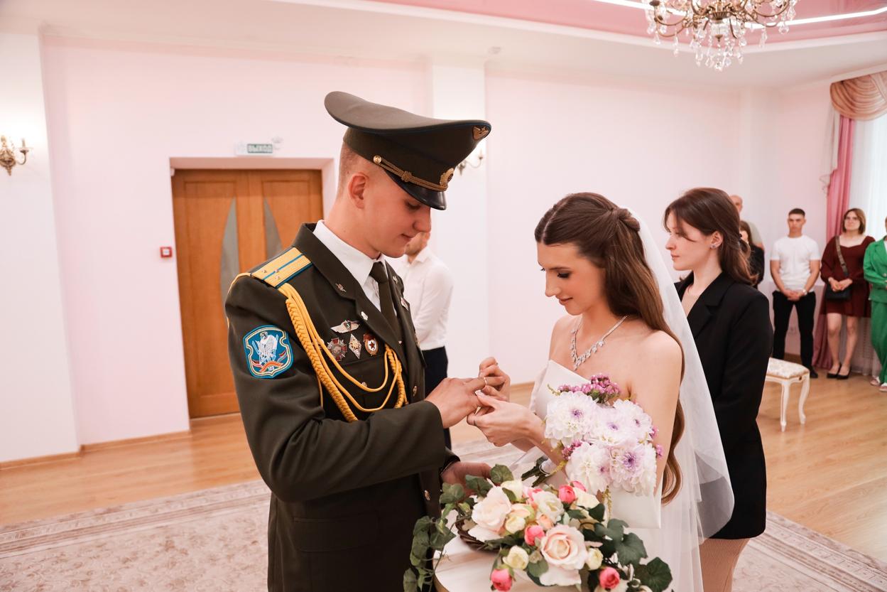 Предложение руки и сердца выпускник факультета военной разведки Военной академии Республики Беларусь, а ныне военнослужащий 103-й Витебской отдельной гвардейской воздушно-десантной бригады Даниил Луцейкович сделал своей избраннице в июне этого года, «вооружившись» букетом и кольцом. А заявление молодые люди подали в День десантников и сил специальных операций, 2 августа. Сначала побывали на службе у Даниила, праздничных мероприятиях в городе, посмотрели выступления голубых беретов, а затем красивые, нарядные и счастливые направились в отдел загса Витебского райисполкома.