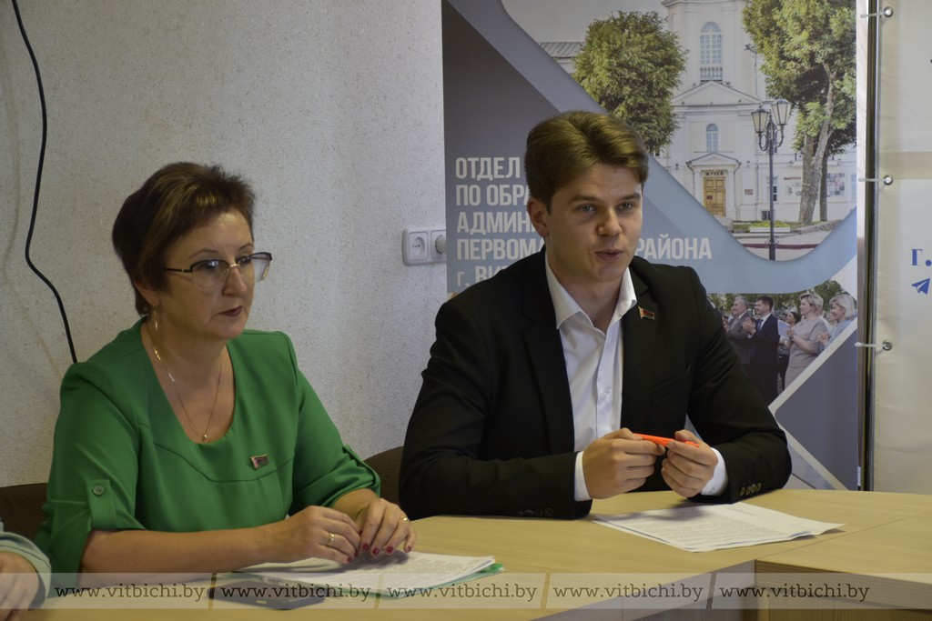 6 сентября / "Витьбичи" / Виталий Сеньков/. Депутат Палаты представителей Национального собрания Республики Беларусь, председатель Постоянной комиссии по экономической политике Виктор Николайкин вместе с руководителями учреждений общего среднего образования Первомайского района принял участие в диалоговой площадке «От качества образования – к качеству жизни».