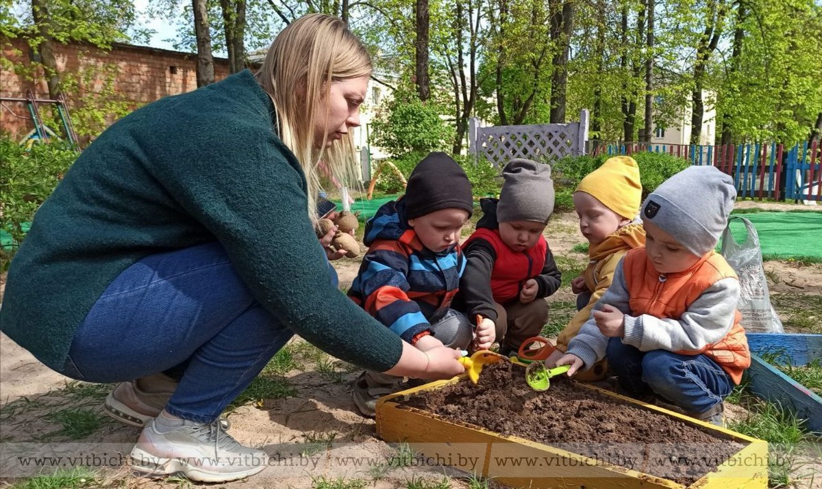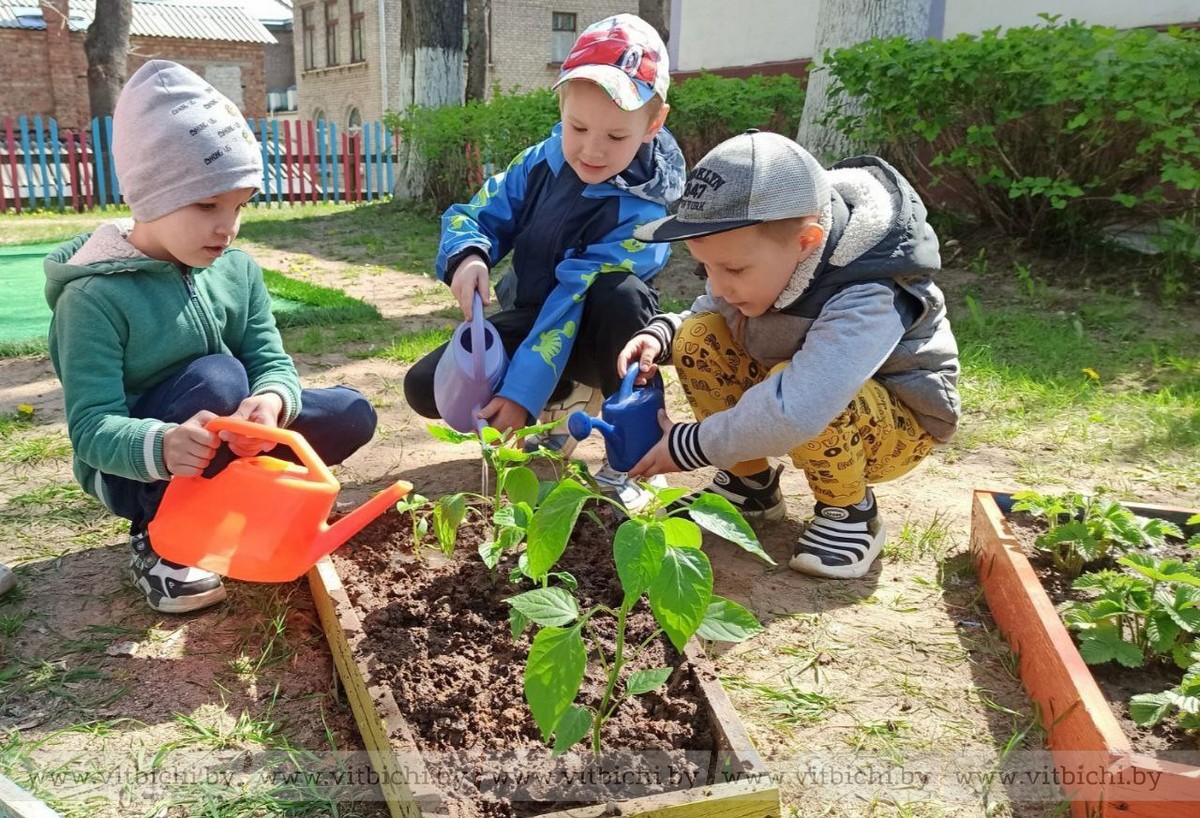 На территории садика теперь растет лук, чеснок, перец, картофель и фасоль.