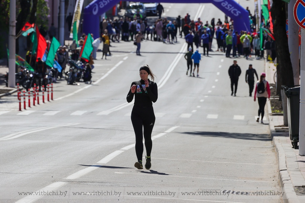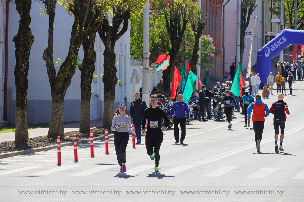 Когда на площади Победы акция памяти завершалась по всему городу праздничной рекой растекались различные мероприятия. В том числе и спортивные - массовый забег на 6,4 километра. В маршрутном листе рейса значились улица Замковая, проспект Фрунзе и другие локации. Оказалось, что попробовать свои силы в этом испытании отличная идея – в итоге на дистанцию вышли более 500 человек. Среди них Елена Варфоломеева.