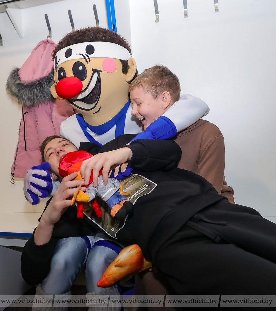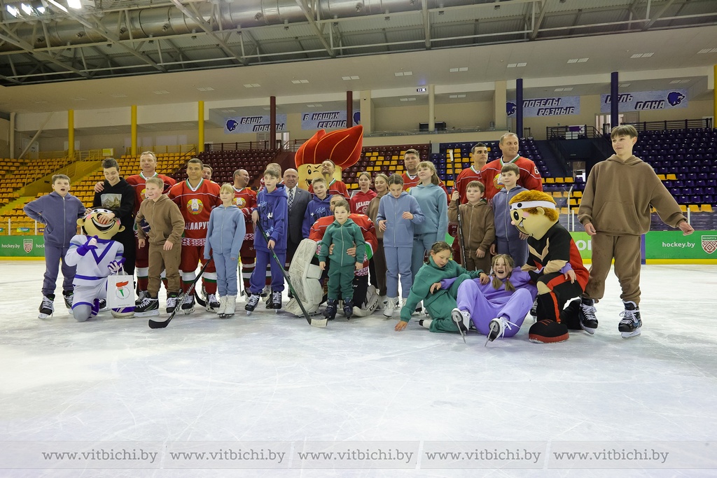 После ярких эмоций на льду на льду праздник переместился в Детский дом города Витебска, где живут 60 воспитанников в возрасте от 3-х до 18 лет. Сюда гости привезли развивающие комплексы, а также спортивный инвентарь: футбольные бутсы, коньки, велосипеды, самокаты, инвентарь для занятий в бассейне. Президентский спортивный клуб также приготовил подарок для каждого ребенка и традиционно оказал финансовую помощь учреждению.