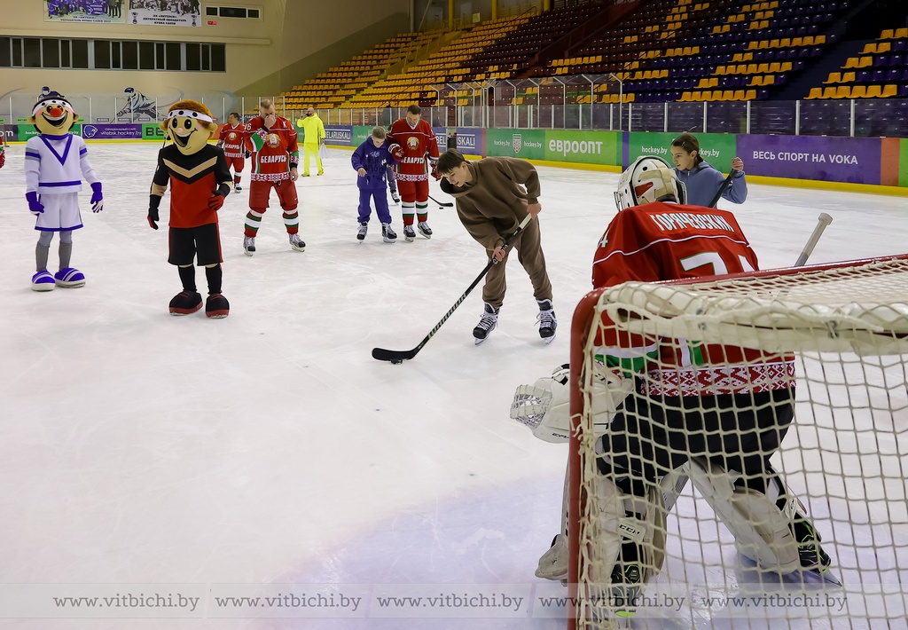 – Очень приятно находиться в Витебске и участвовать в таком добром мероприятии. Я уверен, что на такой хорошей арене все дети сегодня получают удовольствие от происходящего на льду. Мы стараемся, чтобы все ребята окунулись в атмосферу новогодних праздников и получили удовольствие от общения с нами, – рассказал директор СДЮШОР по хоккею с шайбой имени Руслана Салея Максим Шиманский.