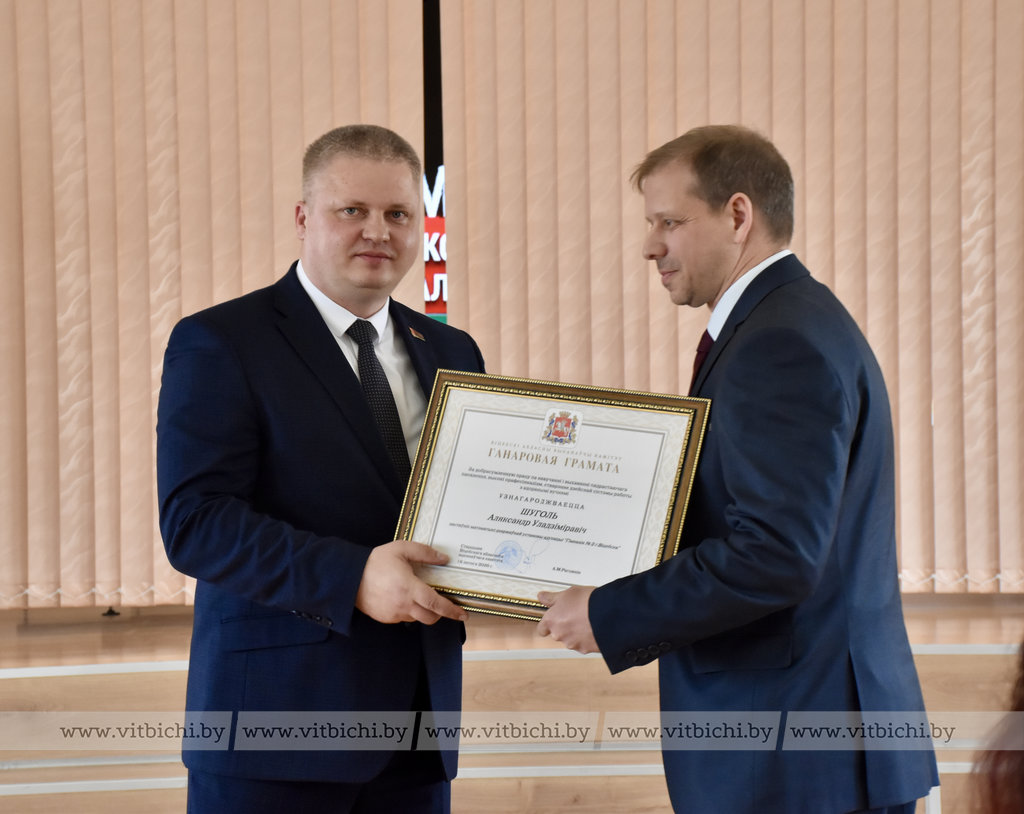 Признание заслуг коллектива прозвучало и на самом высоком государственном уровне. Руслан Шкодин вручил коллективу гимназии Благодарность от председателя Палаты представителей Национального собрания Республики Беларусь Игоря Сергеенко.