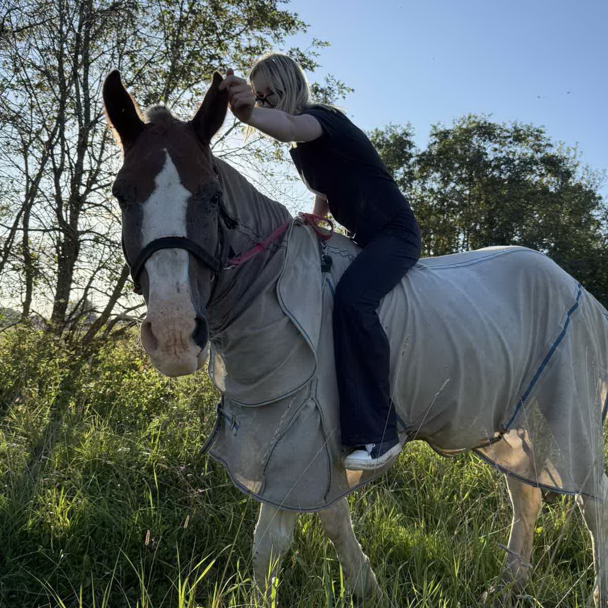 Осенью лошадь Лизы находилась на передержке у конных заводчиков, которые помогали девушке освоить азы верховой езды. Елизавета с радостью ухаживала за своим любимчиком — вычесывала, подкармливала. Помогала даже лечить его от подкожного овода, для чего красавцу Эдельвейсу пришлось попрощаться со своей шикарной гривой и носить специальную защитную мантию.
