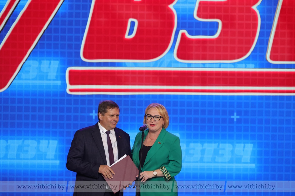 От лица руководства Витебского облисполкома Анжелика Никитина поздравила коллектив завода, который насчитывает почти 500 человек, с юбилеем предприятия, пожелала добра, мира и благополучия, перспективных планов и жизненной энергии, оптимизма и здоровья для их реализации.