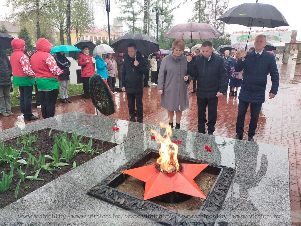 Семинар "Влияние климата на безопасность и гигиену труда" состоялся в Городке в день очередной годовщины аварии на Чернобыльской АЭС. Его участники во главе с председателем комитета по труду, занятости и социальной защите облисполкома Борисом Ефремовым и председателем Городокского района Ириной Поляковой возложили цветы к мемориальному комплексу "Бессмертие", вспомнив ликвидаторов Чернобыльской аварии, которые ценой своей жизни потушили энергоблок.