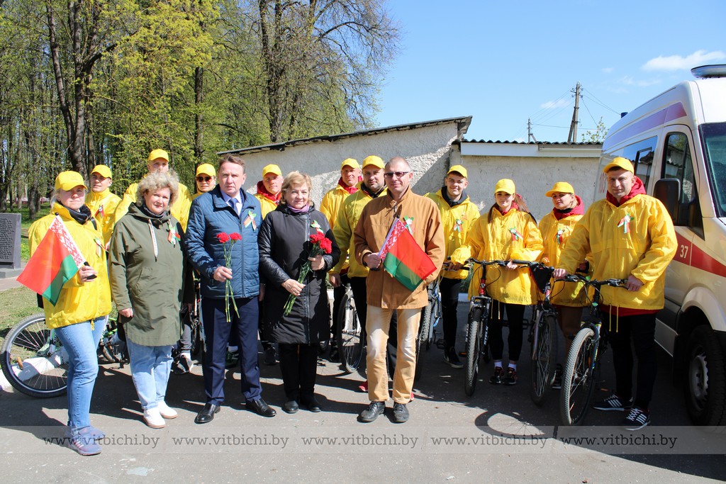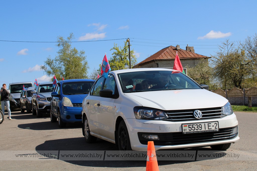 После митинга стартовал марафон «Дорогами Победы». Колонна машин направилась из Ворон в деревню Стасево Лиозненского района, где участники автопробега возложили на офицерском кладбище венки и цветы к воинскому захоронению.