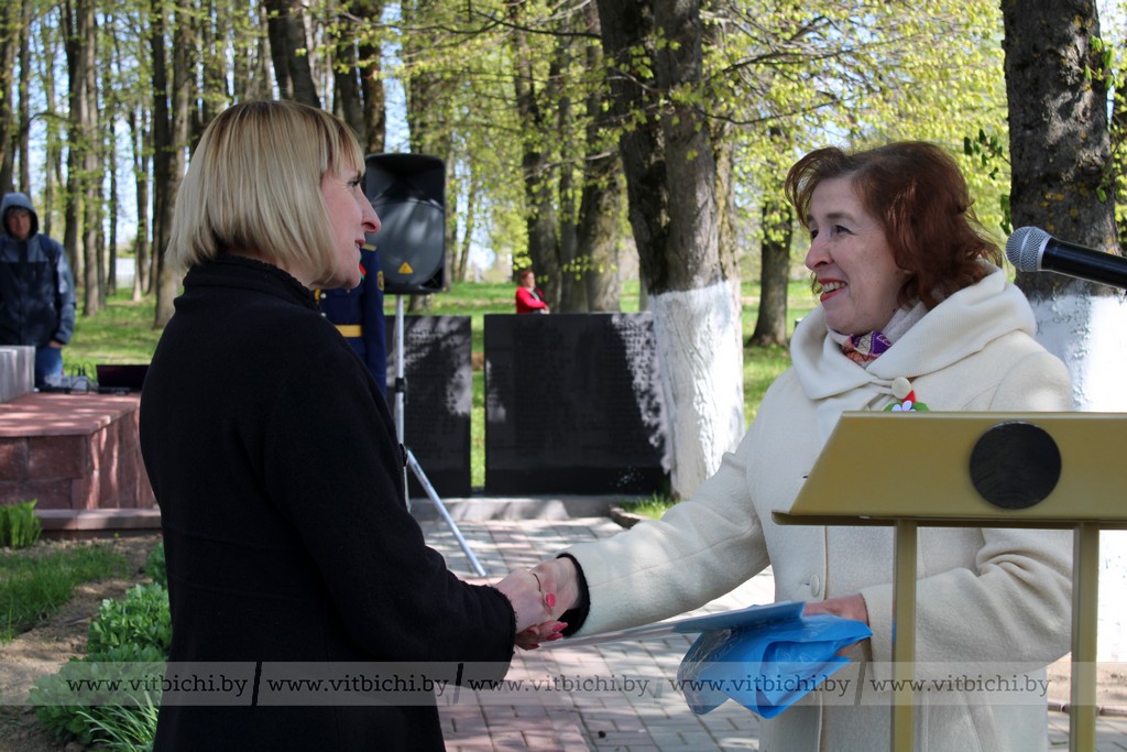 История мемориала в агрогородке Вороны – это только часть истории мужественного подвига советского народа, защищавшего свою землю от фашистов. На братской могиле, где захоронено 7827 советских воинов, установлена скульптура двух солдат, размещена табличка с надписью «Стоявшим насмерть во имя жизни». Помнить о тех страшных событиях, чтить каждого героя и беречь мир на земле призвал участников митинга председатель Витебского районного Совета депутатов Виктор Дорожкин. Виктор Васильевич вручил директору Вороновской СШ Светлане Билаловой свидетельство о присвоении учреждению образования имени И. Е. Бесхлебного.