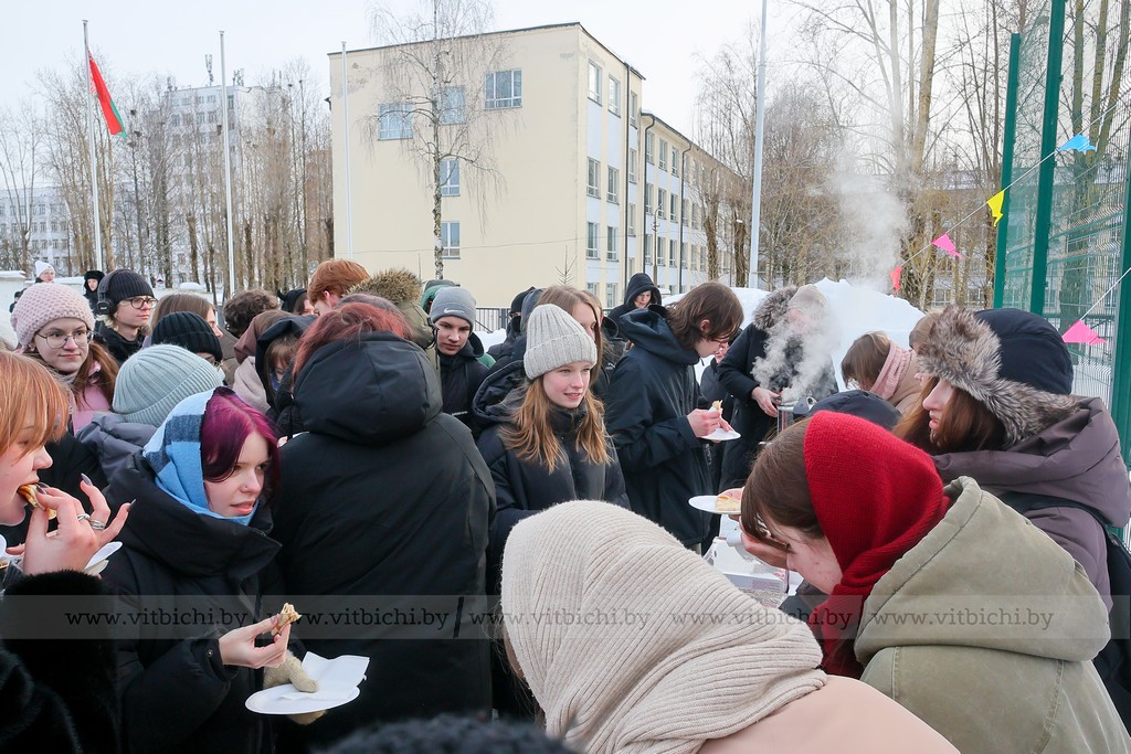 Профком студентов также подготовил настоящее гастрономическое удовольствие для всех присутствующих. Ароматный горячий чай, блины и разнообразные сладости согревали участников в этот февральский морозный день. Кульминацией масленичных гуляний стало традиционное сожжение чучела.
