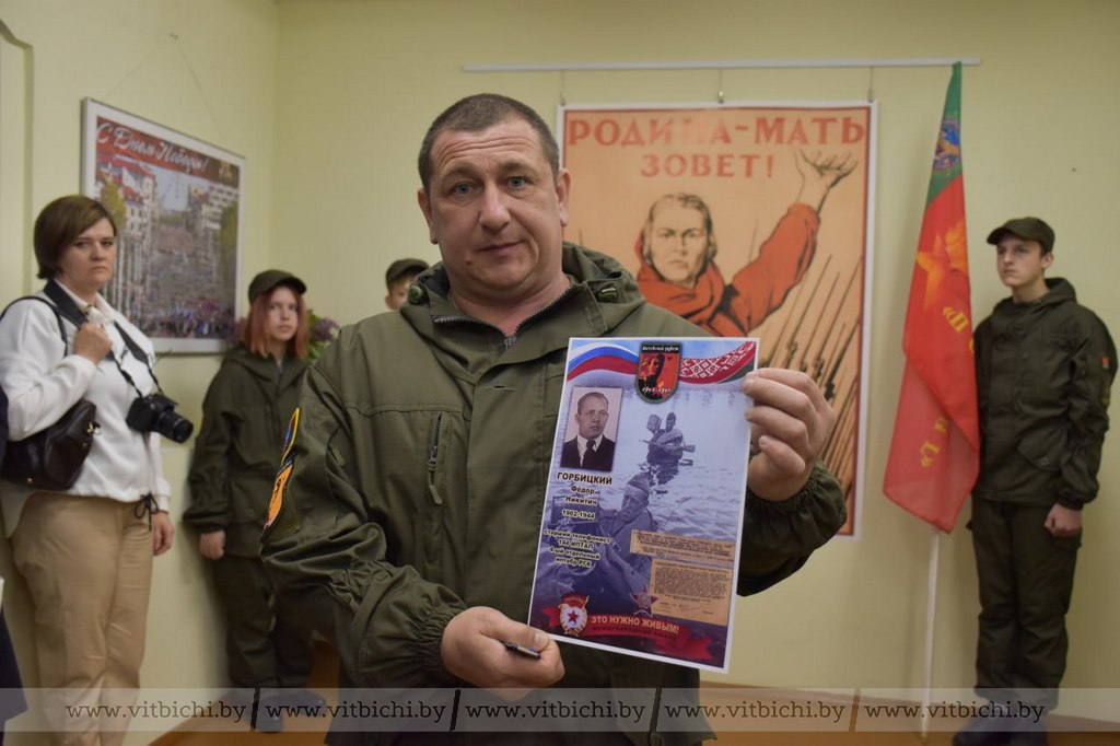 Заместитель председателя клуба «Витебский рубеж», руководитель военно-патриотического поискового отряда «Подвиг» Октябрьской средней школы Витебского района имени Героя Советского Союза И. П. Соболева Дмитрий Болелов рассказал о том, что главная задача поисковиков – увековечивание памяти тех, кому мы обязаны мирным небом. Вахты памяти, встречи с ветеранами, теми, кто помнит все ужасы войны, организуются для того, чтобы отдать дань уважения и для воспитания подрастающего поколения.