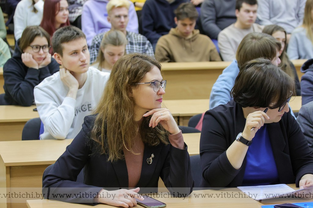– Мне интересно поговорить с выпускниками высшего учебного заведения, который готовит специалистов для реального сектора экономики, – отметила Анжелика Никитина до начала мероприятия. – Тематику сегодняшней встречи можно разделить на две части. Первая касается единого дня голосования. Очень важно проинформировать студентов о том, насколько важно сделать свой выбор на благо развития нашей страны. Это наше будущее, в котором будут жить наши дети и последующие поколения. Вторая не менее важная тема, которая недавно обсуждалась на совещании ректоров вузов у Президента Беларуси, – это подготовка кадров. Это очень актуальный вопрос, учитывая, что ВГТУ является одним из ключевых вузов в подготовке кадров в том числе Витебской области. Здесь практически 60 процентов обучающихся ребят из области, которые в будущем трудоустроятся на наши предприятия.