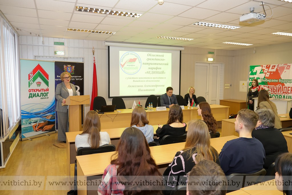 В рамках областного гражданско-патриотического марафона «#Единый» заместитель председателя облисполкома Анжелика Никитина встретилась со студентами выпускных курсов и их преподавателями.