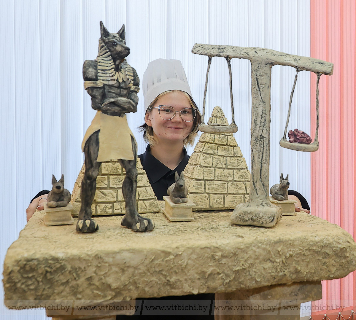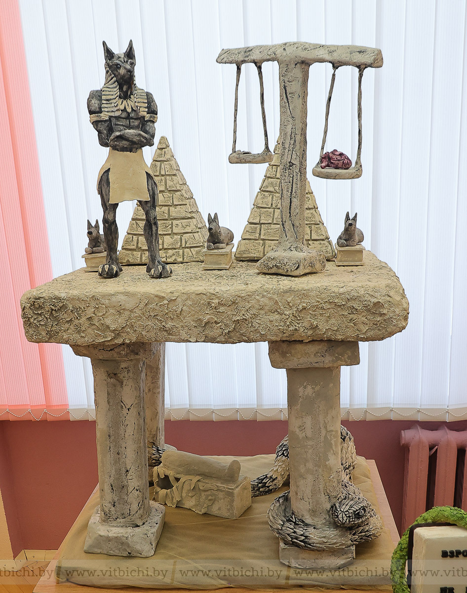 А Нану Пирцхелаву вдохновила философия древнего Египта, история Анубиса – бога погребальных ритуалов. Девушке, в принципе, близка мистическая тема, минимализм в цветах и монументальность. На изготовление композиции у нее ушло 60 килограммов соленого теста.