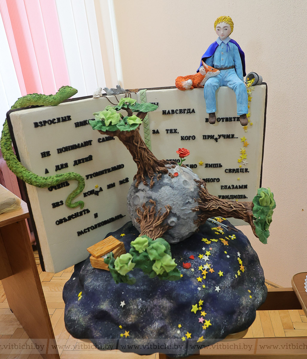 Сразу в трех направлениях попробовала свои силы учащаяся колледжа Юлия Елисеева: приготовила праздничный торт из мастики, композицию из соленого теста и пряник, что обернулось двумя золотыми и серебряной медалью соответственно. Юлия предпочитает работать с соленым тестом, хотя уверена, что, приноровившись, из любого материала можно делать шедевр. Например, такой, как ее работа по мотивам произведения Антуана де Сент-Экзюпери «Маленький принц». Невероятное сочетание фактур, цветов и различных техник делает композицию из соленого теста настоящим произведением искусства.