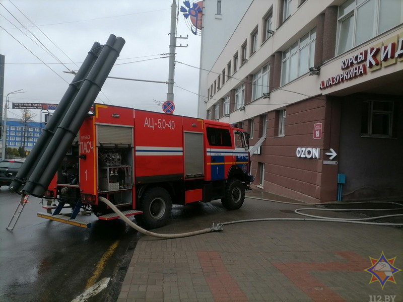 По прибытии к месту вызова подразделений МЧС наблюдалось задымление на первом этаже трехэтажного здания общежития, принадлежащего Витебскгипроводхоз.