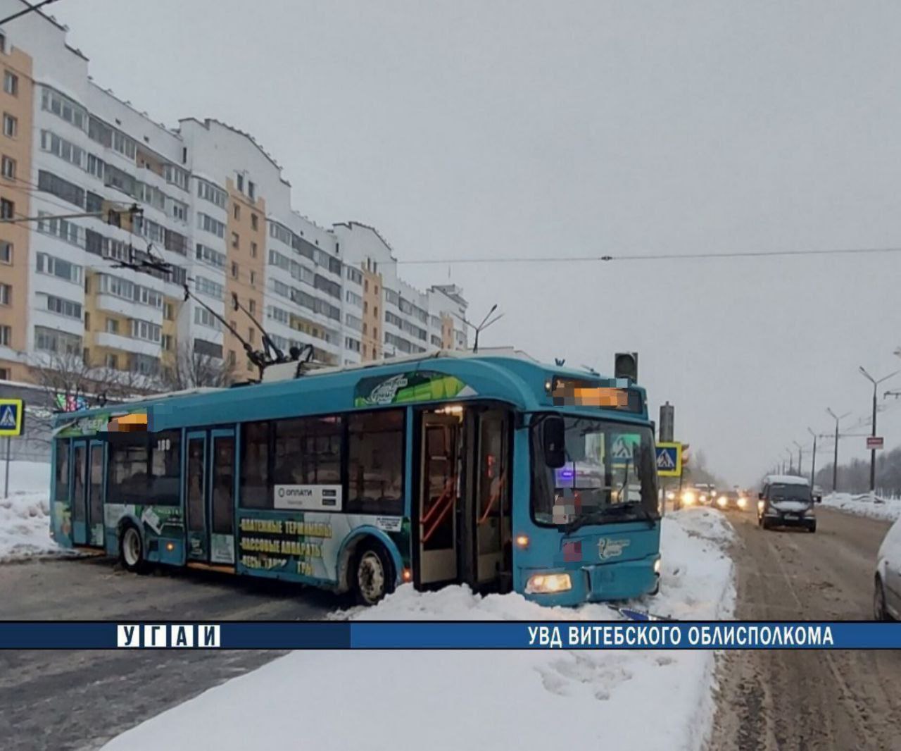 Троллейбус врезался в дорожный знак на проспекте Строителей в Витебске. Водитель пытался избежать наезда на пешехода-нарушителя - такова предварительная информация ГАИ по ДТП, которое произошло сегодня утром.