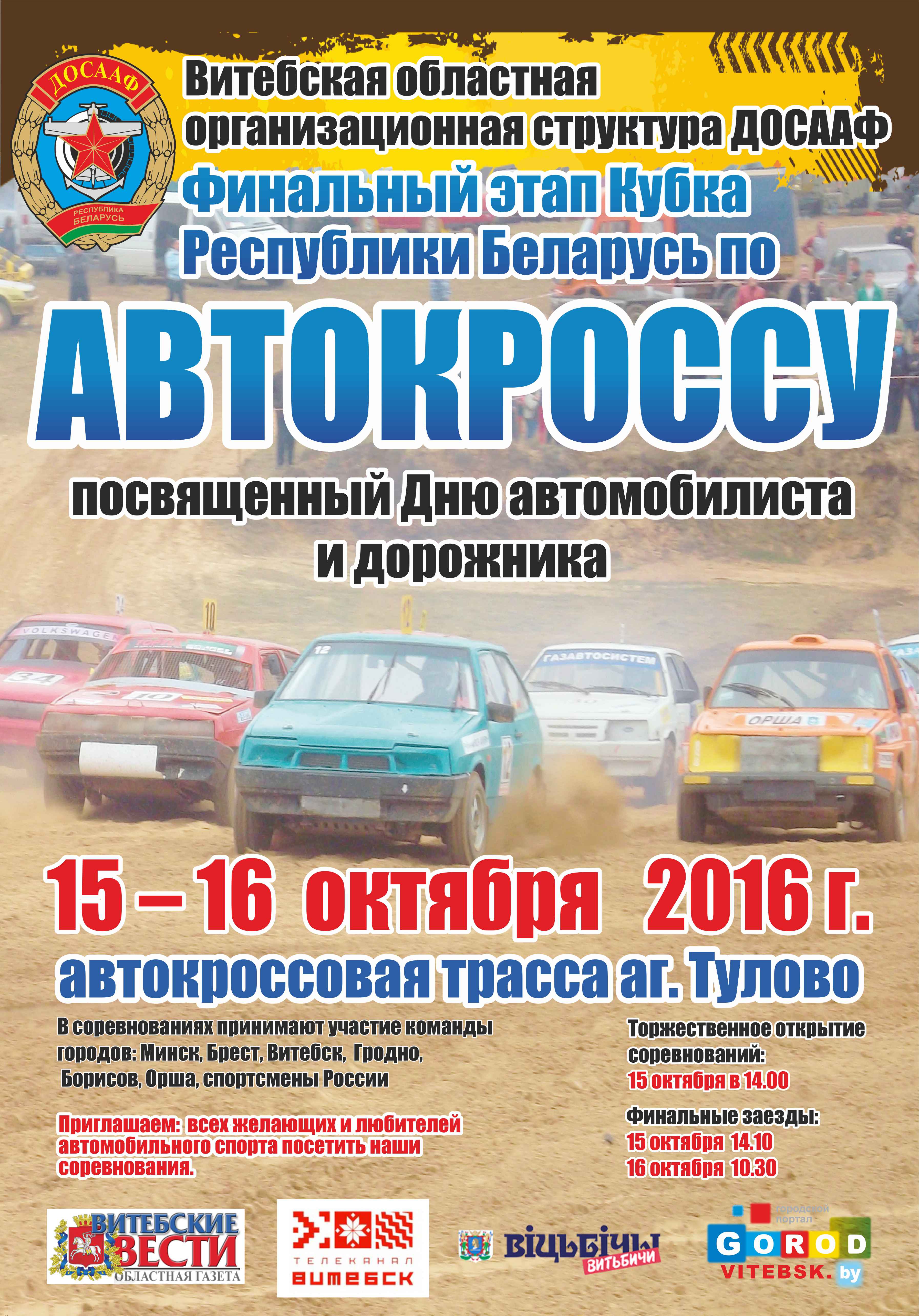 В эти выходные в агрогородке Тулово состоится автокросс, посвященный Дню дорожника. Приглашаем всех любителей автоспорта.