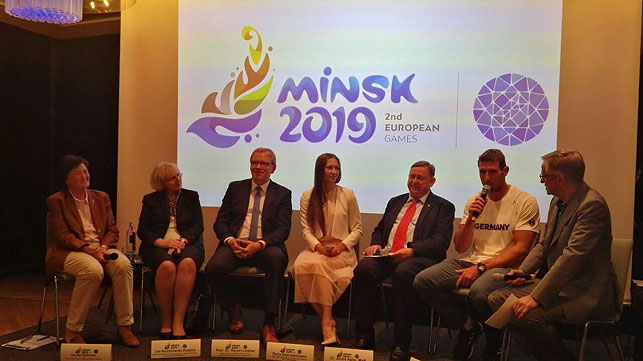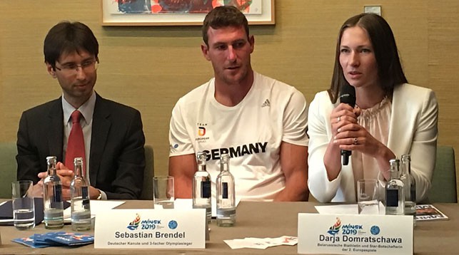 Звездный посол II Европейских игр Дарья Домрачева, посол Беларуси в Германии Денис Сидоренко рассказали журналистам о предстоящем спортивном форуме. Каноист Себастьян Брендель, который побеждал на I Европейских играх в Баку, отметил, что на гребном канале в Заславле под Минском сборная Германии постарается показать высокие результаты.