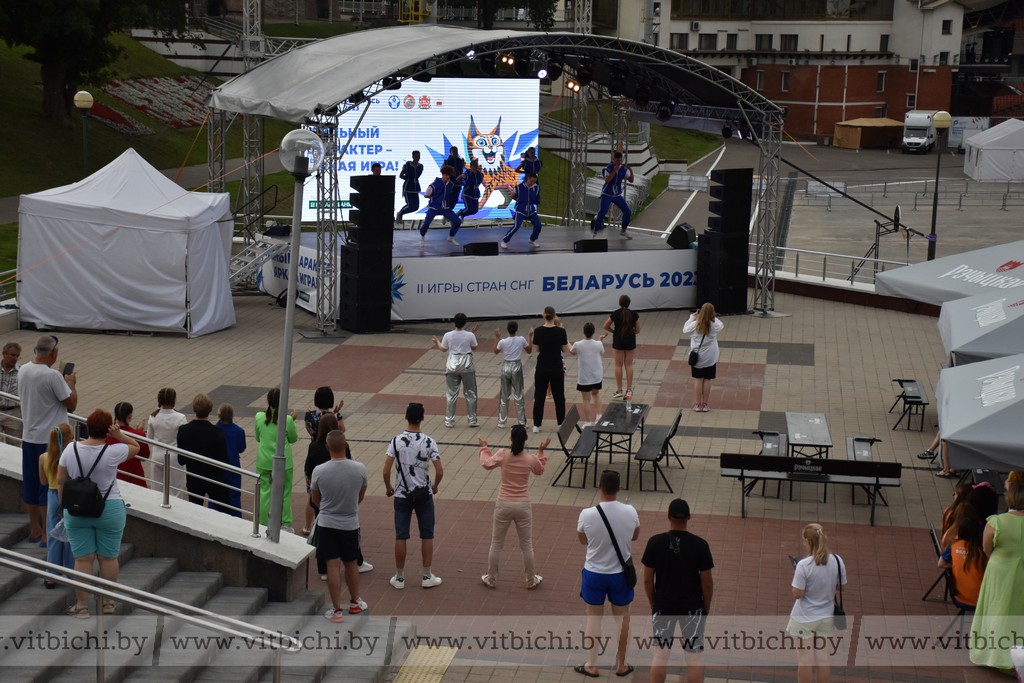 Несмотря на то, что соревнования в нашем областном центре (а Витебск принимает бойцов тайского бокса) стартуют 9 августа, организаторы решили, что еще больше подогреют интерес болельщиков, чтобы они могли, даже не присутствуя на спортивных аренах в разных городах, «побывать» на них с помощью установленного в зоне гостеприимства светодиодного экрана. Все собравшиеся активно выражали свою радость.