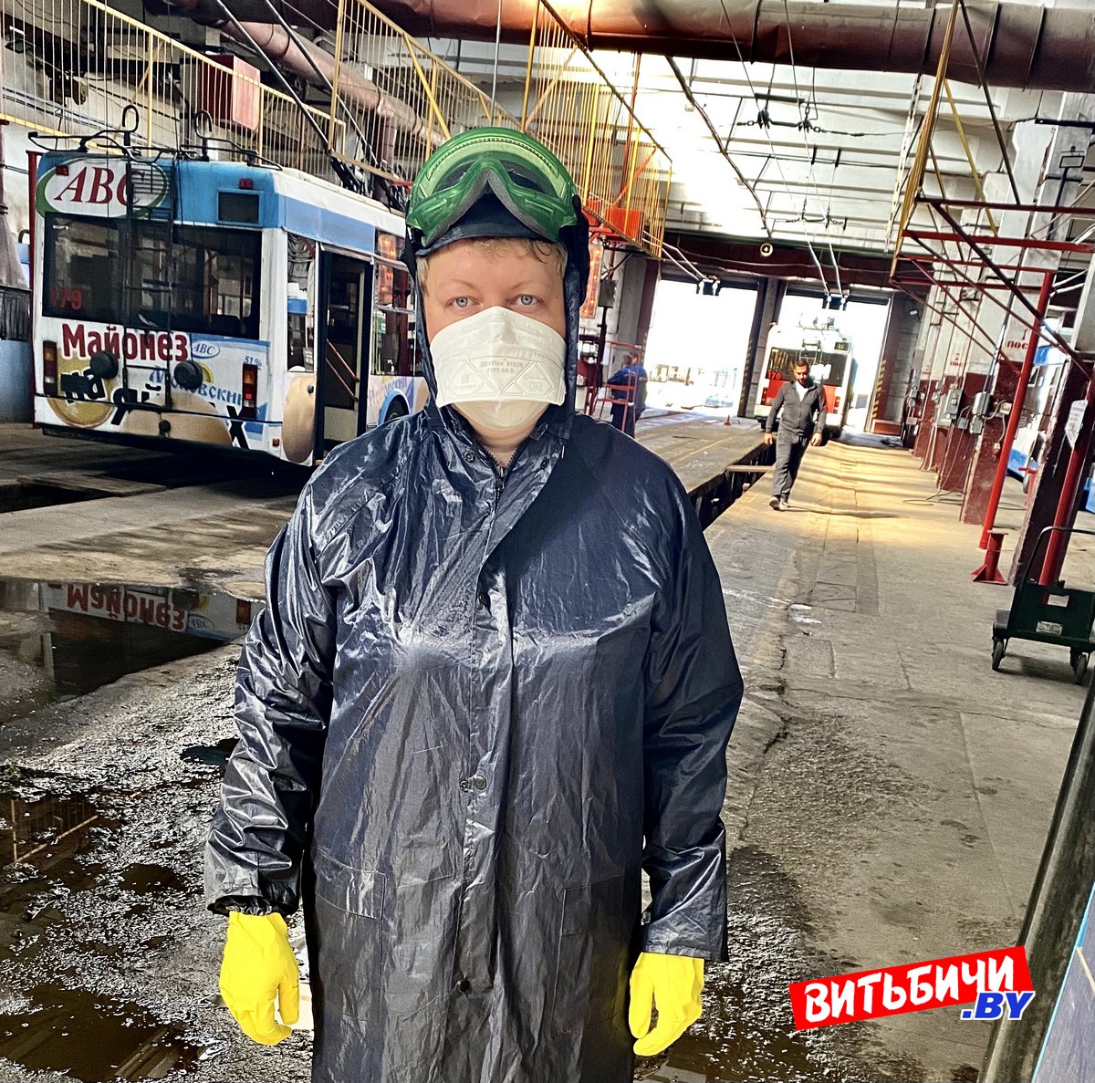 За 12-часовую рабочую смену Наталья успевает вымыть порядка 50 троллейбусов. Следует отметить, что городской транспорт — сиденья, стекла, поручни, пол – в Витебске всегда был чистым. Люди работают!