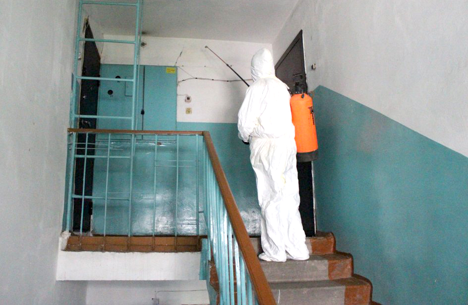 Тщательной дезинфекции подвергаются все поверхности, к которым могут прикасаться жильцы, начиная от входных дверей в подъезд, кодовых замков, почтовых ящиков, до лестничных перил, лифтовых кнопок и дверных ручек квартир.
