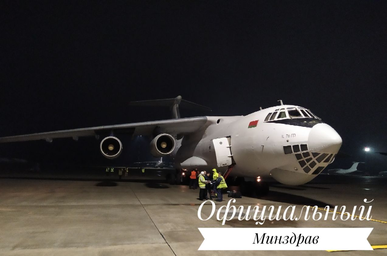 Самолет с гуманитарным грузом на борту приземлился в Национальном аэропорту Минск в ночь на 12 ноября, сообщает официальный Минздрав.