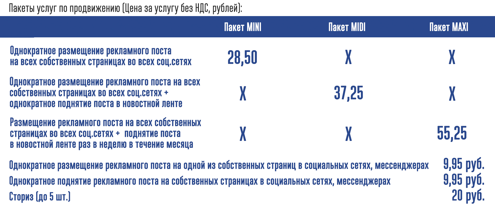 Прейскурант на размещение рекламно-информационных материалов в соцсетях.